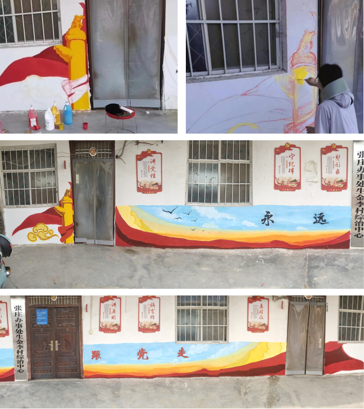 2021级产品设计专业2班李启滢在暑期报名参加了家乡“五星”党支部墙体彩绘活动。