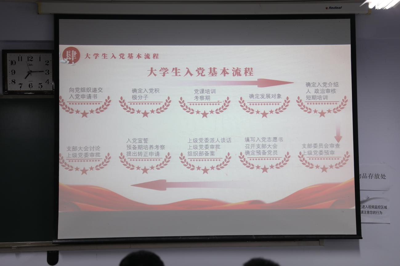 通过本次宣讲会,不仅使新生对入党流程有了明确的认识,加深了对党组织的了解,更提高了大家的入党积极性,坚定了早日成为一名光荣的共产党员的决心,激励着与会新生怀揣理想信念,在波涛汹涌的大海上扬帆远航。
