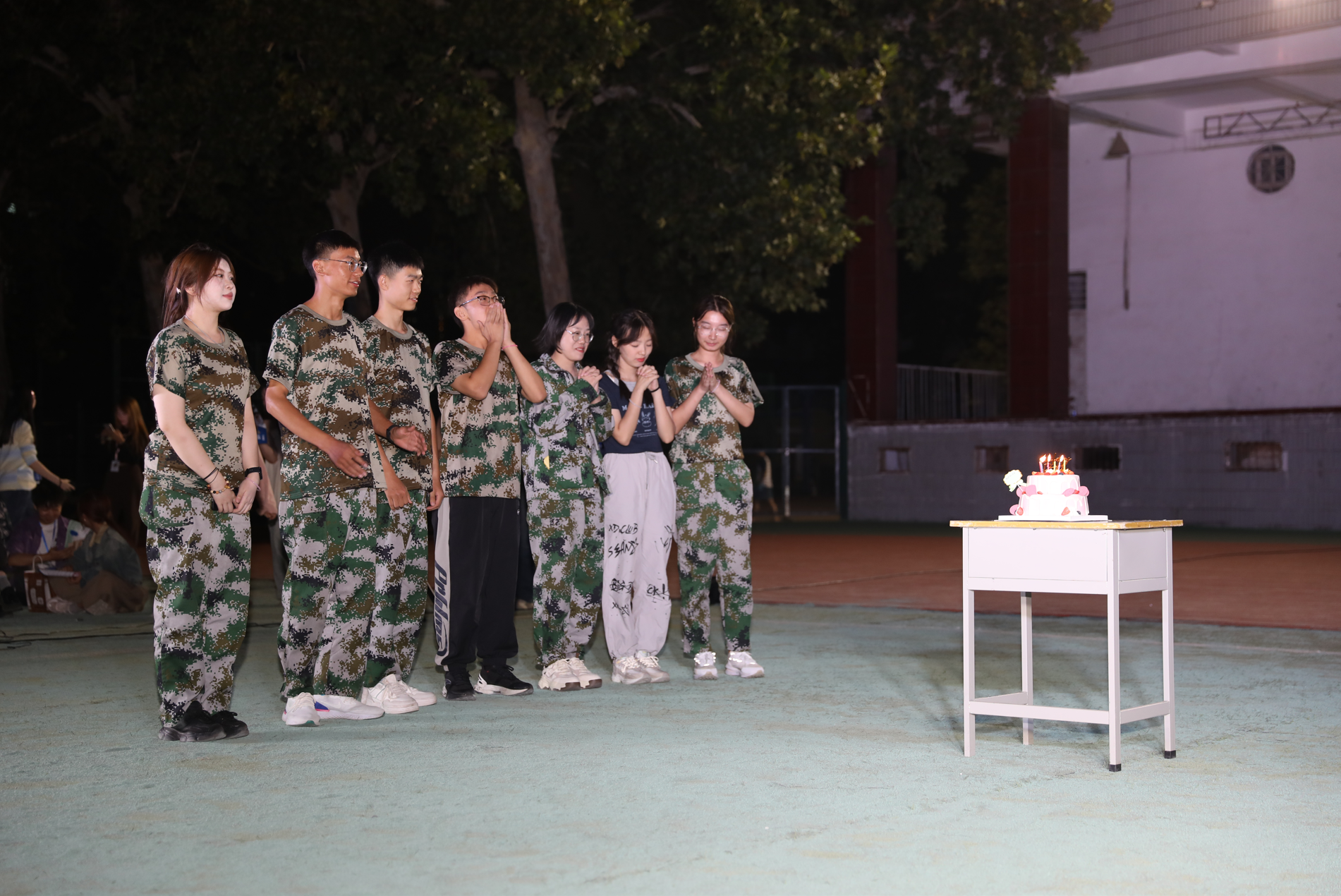 中场休息时,瓜子TV 为7名新生举办了一场别开生面的集体生日会,伴随着《生日快乐》歌曲节拍,寿星们在祝福声中许下生日愿望并吹灭蜡烛,他们畅谈军训感言并寄语大学生活。同学们纷纷上前送上独特有趣的生日祝福,大家在歌声中共同分享生日的喜悦,气氛温馨热烈。
