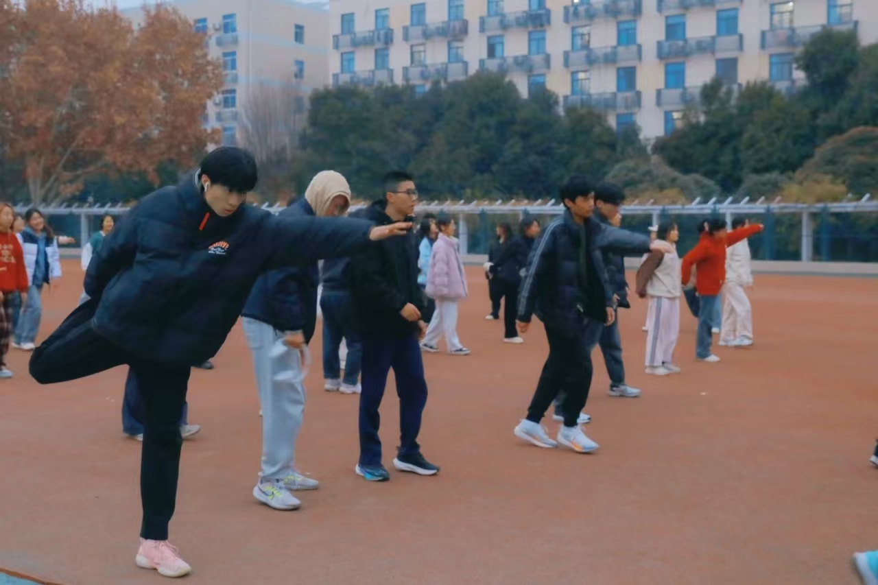 于文化路校区操场开展冬训。在院运动会中表现优异的学生们均积极加入了冬训活动。