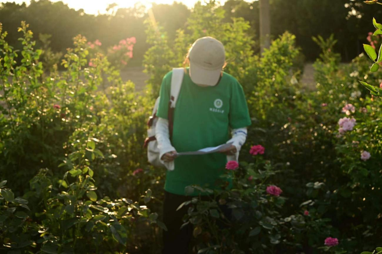 活动中,园区内负责人热情地欢迎了实践团队的到来,并针对毛庄月季的植物种类、植物特征、分类常识、生活习性等方面进行了生动讲述及相关材料的知识普及。随后,同学们积极地向现场老师请教,了解月季的识别特征及生长状况,参与实践学习的同学并对月季的叶、花、刺等表型进行了细心的比对和记录。