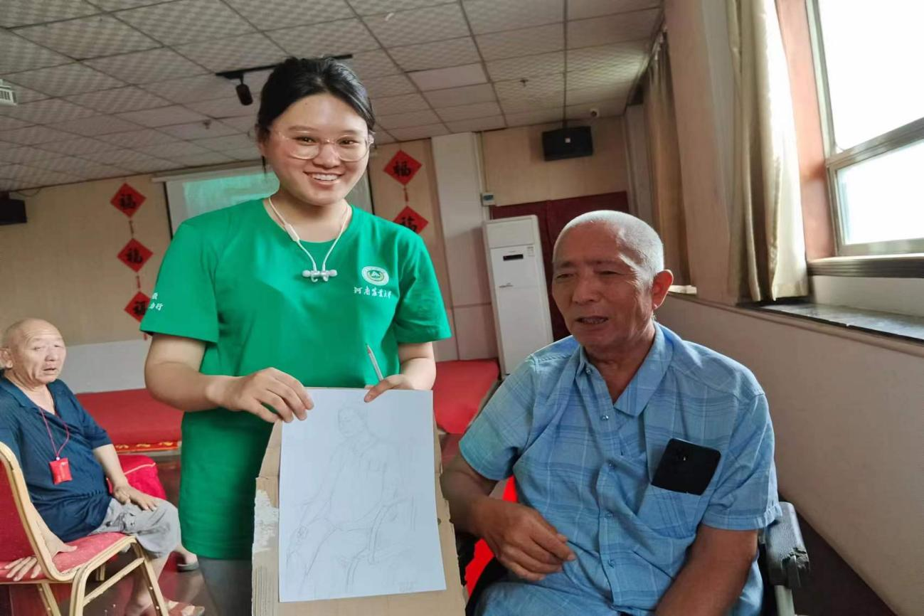 早上,志愿者们早早来到养老院,怀着激动紧张的心情开始一天的志愿活动。在春季健康知识讲堂上,志愿者与老人互动聊天,分享健康知识。在游戏环节,志愿者们充分发挥自身专业优势,为老人们画肖像,指导折纸。下午,志愿者带来了精心准备的舞蹈、歌曲等文艺节目,现场欢声笑语、暖意融融。