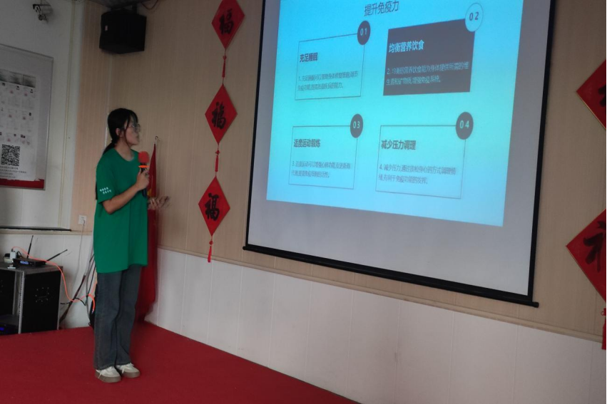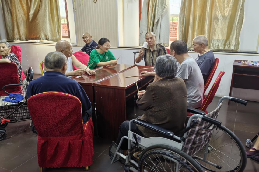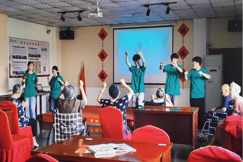 活动伊始,志愿者们与老人们合唱歌曲,营造了温馨的氛围。随后志愿者为老年人开展健康知识讲座,通过讲解,老年人对于自身健康的重视程度显著提高。在热烈的氛围中,志愿者们同老人一起做起了健身操,他们动作整齐,充满活力。在一系列活动中,老人们最感兴趣的是“一杯到底”。参与者们将筷子顶着纸杯依次传递,锻炼了老人们的反应能力和动手能力,几轮下来,乐此不疲。