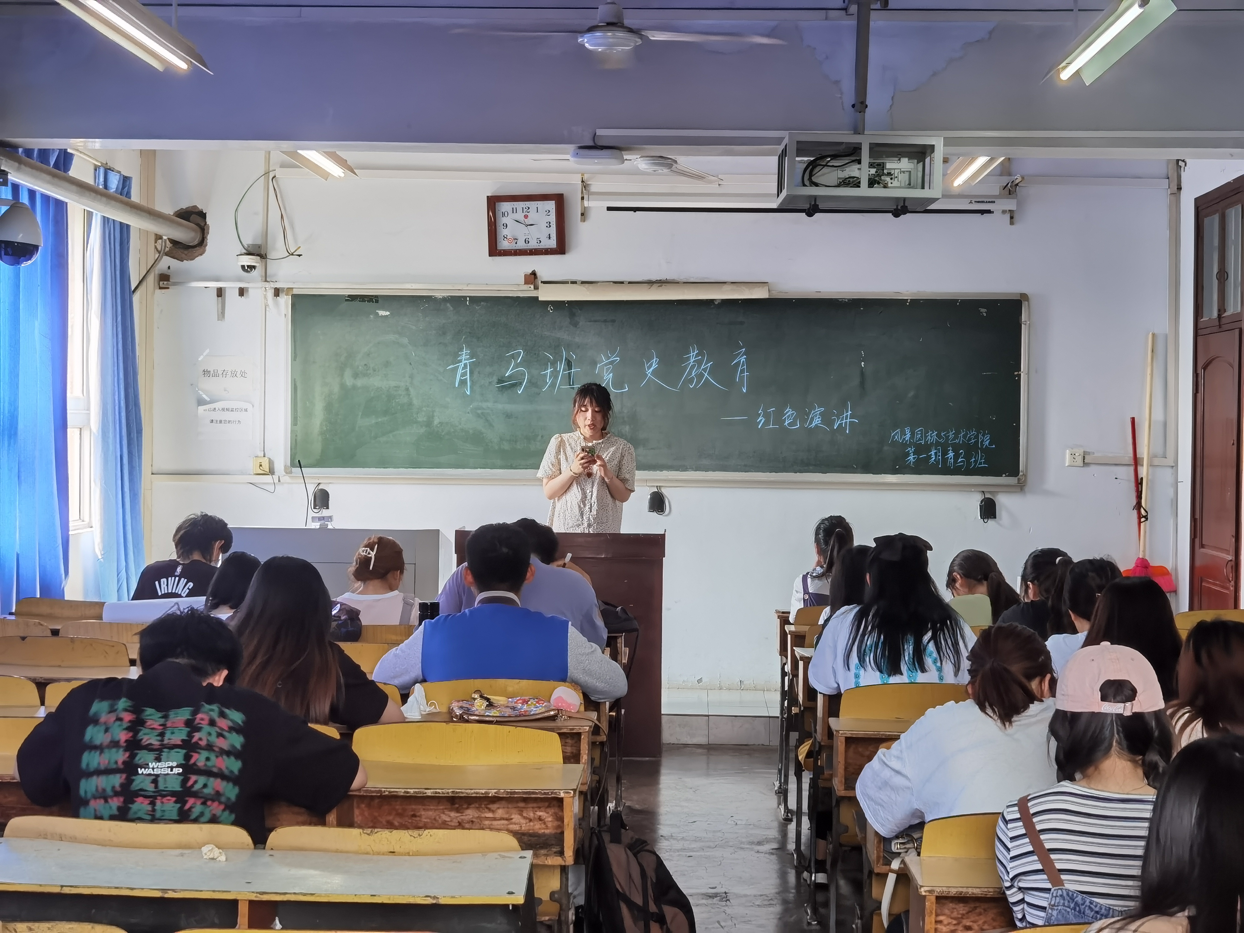 活动伊始,每班各派一名代表向青马学员分享党史小故事。2019级城乡规划专业2班王顺格分享了彭德怀三摘自己画像的故事,展现了彭将军谦虚、不被荣誉所蒙蔽的精神;2019级城乡规划专业1班马世鹏分享了三所里狙击战的故事,体现出共产党员无畏困难、不怕牺牲的精神,激发在场学生的爱国热情和为国为党做贡献的决心。随后,每班另派一名代表进行红色演讲。2019级风景园林专业2班贾晓楠上台发言,她表示,用先辈们的鲜血换来的和平应该由我们守护,作为一名青马班成员,我们应该积极发挥模范先锋作用的,努力成为优秀的青年马克思主义者,做好时代的接班人。2019级风景园林专业1班王颖欣表示2021年是中国共产党建党100周年大庆,我们作为祖国的接班人,更应该为祖国建设添砖加瓦,献出自己的一份力量。学生代表的精彩演讲激起了在座青马学员的爱国爱党热情,他们表示将提高自身科学文化素养,积极提升自己,为社会、为国家做出贡献。
