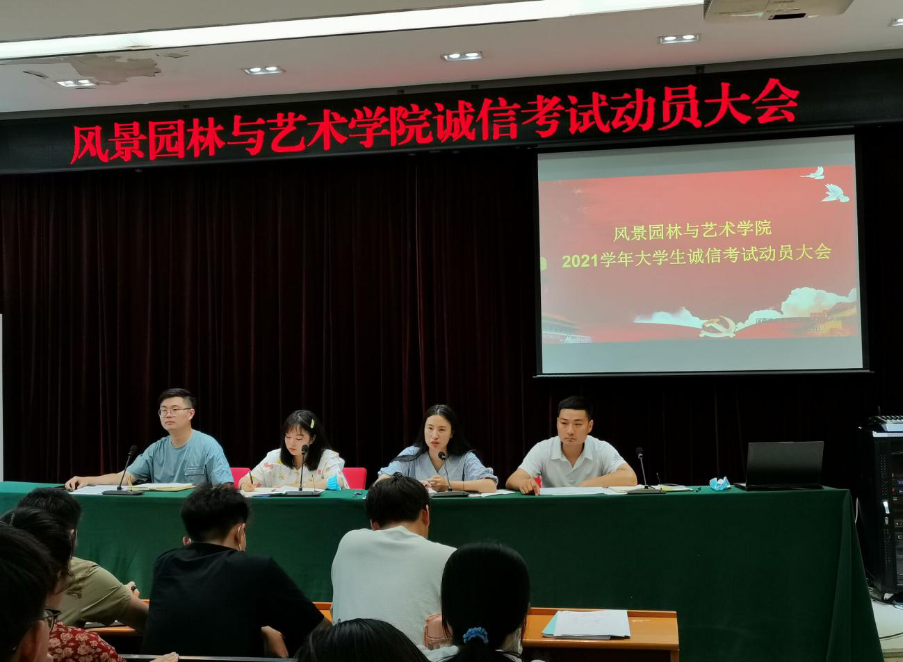 会上,史玥宣读了《河南农业大学关于进一步加强考试管理的若干意见》文件,为学生们讲解了考试注意事项,并重申考试作弊及处理办法,强调考试纪律。2019级城乡规划2班学生代表任佳鑫宣读《风景园林与艺术学院诚信考试倡议书》,号召同学们认真复习,积极备考,诚信考试。马焱宣读我校《关于开展我校学生资助诚信教育主题活动的通知》,引导帮助学生们提高征信意识、金融意识、风险意识、法律意识,并借助真实诈骗案例讲解,提升学生自我防范观念。徐珂在总结中强调,严肃考场纪律、端正学风态度的重要性,并要求学生干部做好表率作用,以高度的责任心把考试纪律传达给每位同学,共同营造诚信公平的考试氛围。