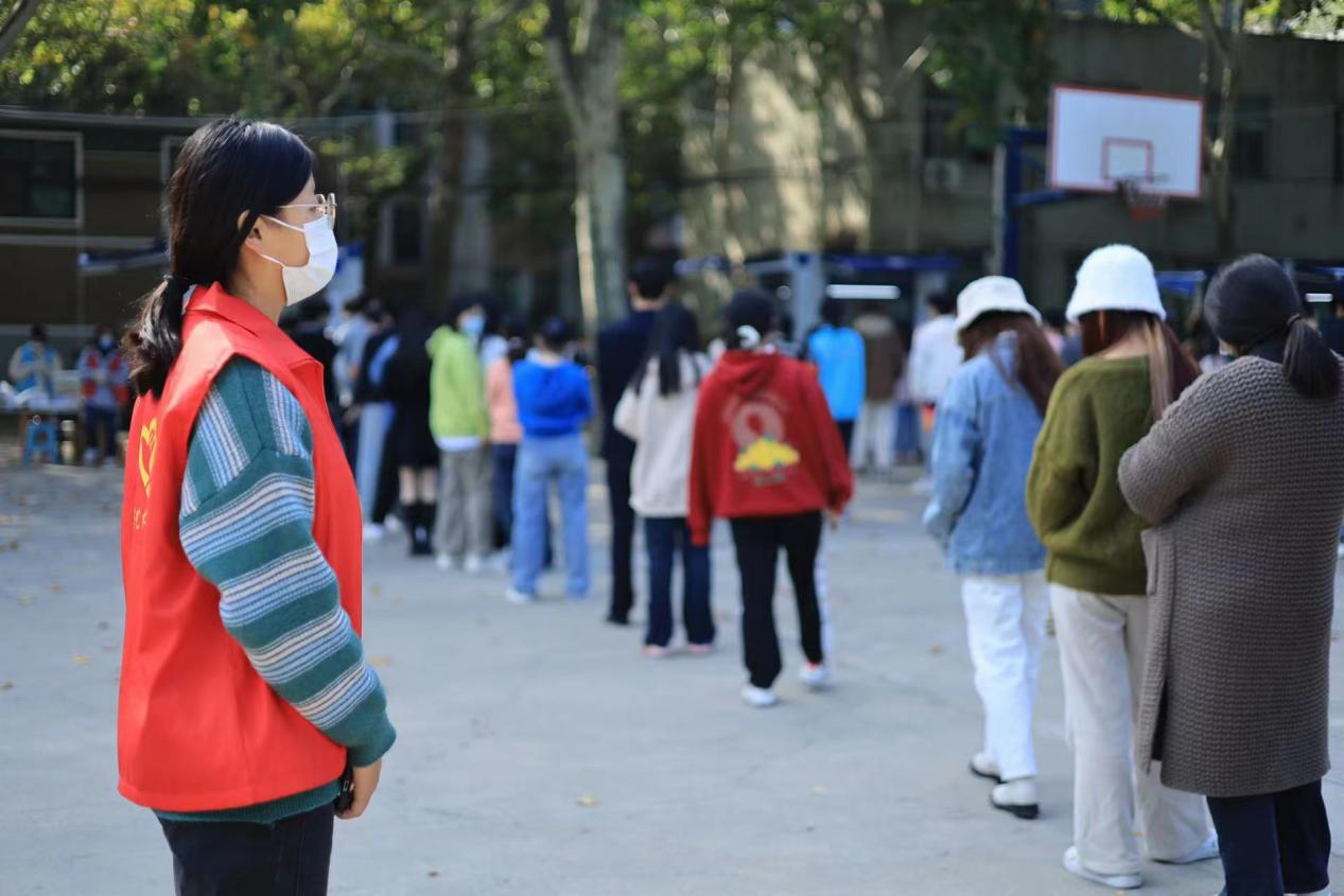 核酸采样现场,在做好个人防护的同时,志愿者们积极协助医护人员完成场地布置、清洁消杀、物资配备等工作;认真组织在场学生完成信息录入,严格落实排队间距,提醒全程佩戴口罩;引导学生错峰前往采样点,灵活应对现场突发情况,高效有序地完成了此次核酸检测采样工作。随后,志愿者在保卫处等相关部门指导下,开展了校园巡查工作。