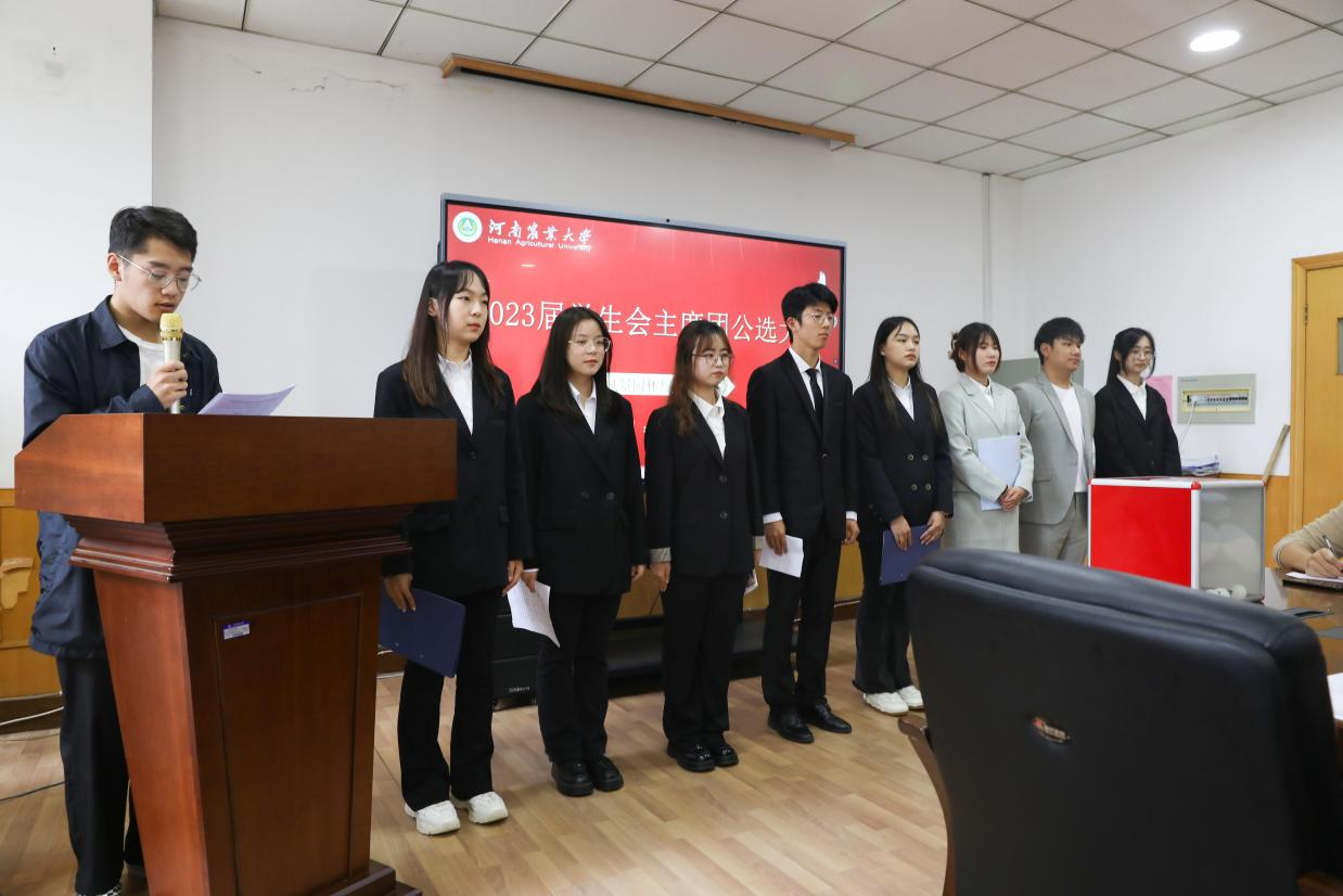 2023届学生会主席团公选大会在文化路校区13号楼二楼第一会议室顺利举行。院党委副书记赵九阳老师,院团委书记徐珂老师,院组织员李雨澍老师,院团委副书记芦嘉俊老师、团委老师马焱老师、以及上届主席团成员参加了此次会议并担任评委。