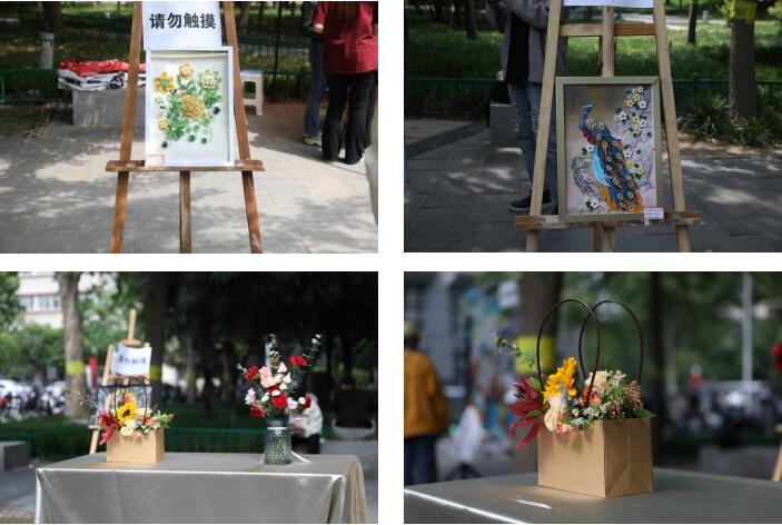 随着学院春蕾艺术团曼妙的舞姿和婉转的歌声,院长田国行宣布活动正式开幕。《歌曲联唱》将江南烟雨的优雅意境带入了校园;语言节目《另一种方式绽放美》让同学们知道如何在千姿百态的生活中绽放自己独特的美;旗袍秀《声声慢》让在场人群感受到了属于东方文化的独特意蕴;由石力匀老师带来的《插花讲座》让在场师生深入了解了插画的技巧和方法,并亲身体验到了插花的乐趣。活动展示了学院学生创作的插花、压花、衍纸、毛线画、手绘纸鸢等手工艺术作品,以各种形式体现艺术作品的包罗万象。一件件精美生动的文艺作品带给师生全新的视觉体验,也让师生对美育有了新的思考。
