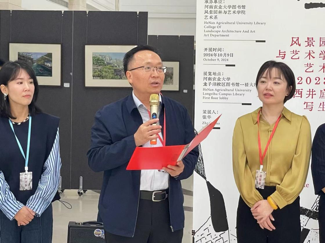 河南农业大学副校长杨喜田、校图书馆馆长张华、党委宣传部副部长陈玺、党委学工部副部长张二龙、校团委副书记雷雯、风景园林与艺术学院党委书记侯永华、副书记赵九阳和艺术系主任孟滨、副主任王娜、副主任宁传华、部分教师及2023级本科生出席了开幕式。开幕式由赵九阳主持。