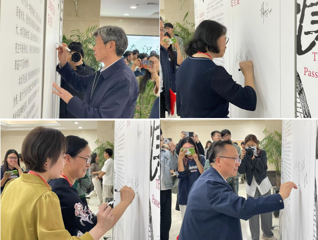 随后,杨喜田宣布河南农业大学风景园林与艺术学院艺术系2023级山西井底村写生展正式开幕!现场气氛推向高潮,掌声如雷。在热烈的氛围中,领导嘉宾为参展学生颁发了入选证书并合影留念。最后,在学院领导和老师的引导下,嘉宾在签名墙上留下签名,并一同参观了此次画展。