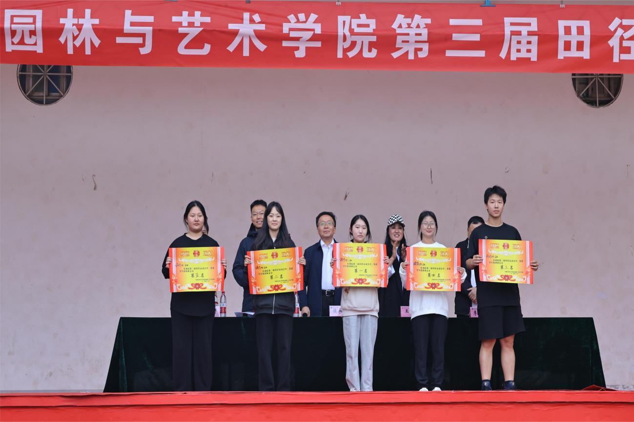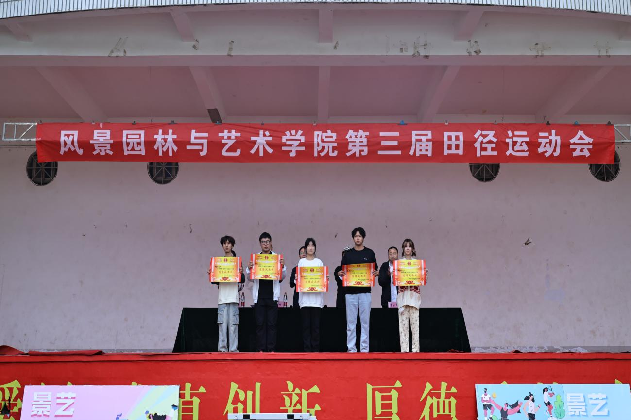 经过激烈角逐,所有比赛项目顺利结束。其中,2024级设计1班、2班、6班、8班,2024级建筑2班获得本届运动会体育道德风尚奖;2024级建筑3班,2024级园林1班,2024级设计1班、2023级景园1班、研究生组获得团体总分前五名。学院领导班子成员和总裁判长分别为获得单项冠军、体育道德风尚奖和团体总分前五名的个人、集体颁奖并合影留念。