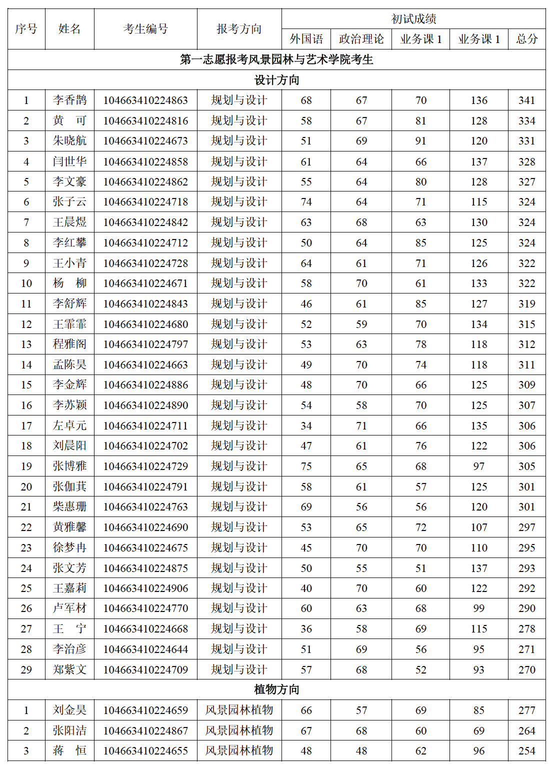 风景园林与艺术学院2023年风景园林专业硕士(非全日制)第一批调剂复试通知