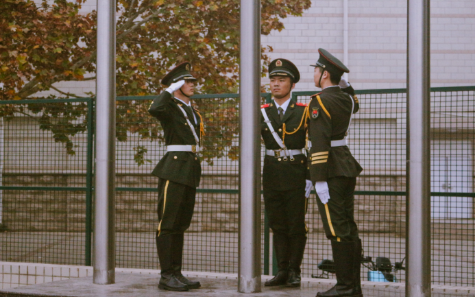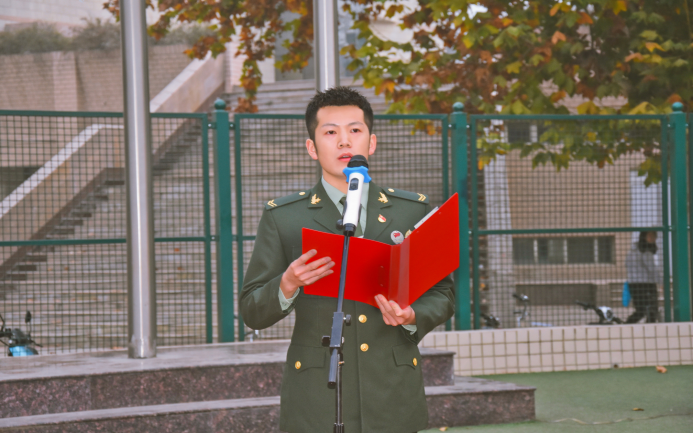7时整,升旗仪式正式开始。国旗护卫队迎着朝阳、踏着铿锵有力的步伐迈向升旗台,全体师生庄严肃立,向国旗行注目礼,在激昂的《义勇军进行曲》中,鲜艳的五星红旗迎风招展、冉冉升起。院党委书记侯永华发表讲话,他强调,回顾历史长河,无数英雄为中华民族伟大复兴而慷慨就义,以生命为代价,换来中华儿女今天的美好生活。处在中国特色社会主义新时代中,站在“十四五”新的历史起点上,全体景艺人应精神抖擞、整装待发,势必以全新的面貌、昂扬的姿态迎接新的困难、攻破新的挑战,展现出风景园林与艺术学院的风采,为学院发展创造出新的奇迹。随后,学生代表2019级环境设计1班王晨光同学,作为一名在校参军入伍的大学生,作为新时代的青年,他表示景艺人应该树立远大的理想,立鸿鹄之志,坚定信念,不断开拓进取,补足精神之“钙”,为祖国更美好的明天而奋斗,把握现在,展望未来。最后全体师生合唱《红旗飘飘》。