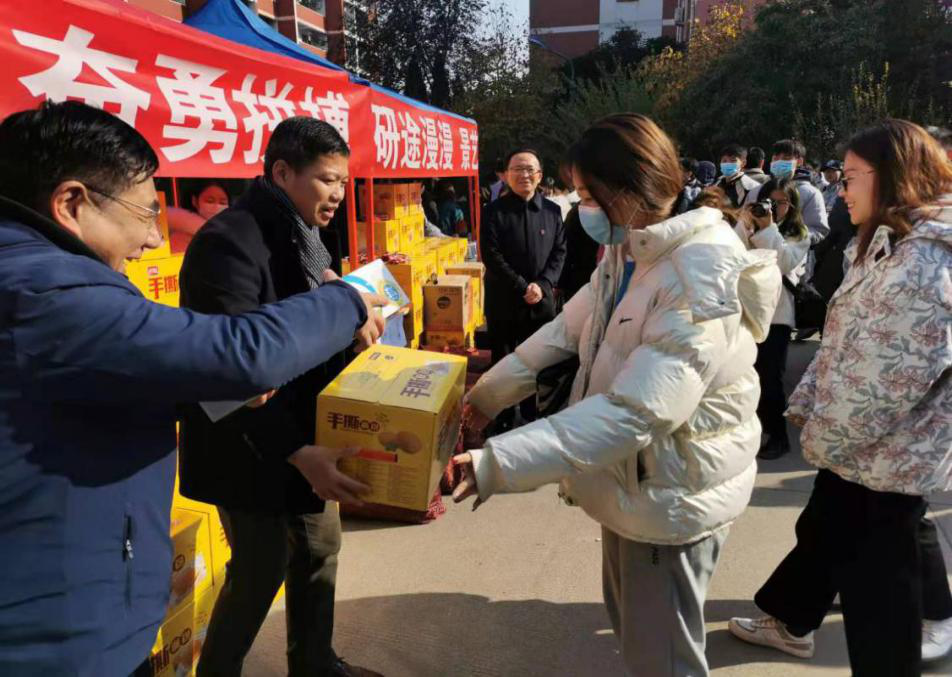 在文化路校区桃李园公寓中心花坛举办“助力考研 温暖同行”活动。院党委书记侯永华,院党委副书记胡明忠,副院长孔德政出席此次活动。全院考研学子参加此次活动。
