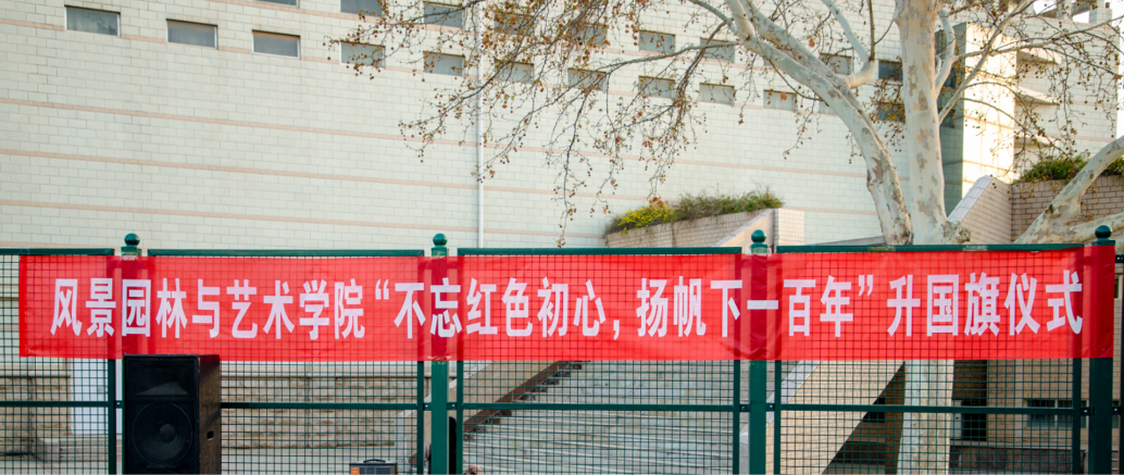 7时整,升国旗仪式正式开始。随着朝阳冉冉升起,国旗护卫队迈着铿锵的步伐走向国旗台。雄壮的《义勇军进行曲》奏响,全院师生肃穆而立,高唱国歌,庄严注视着鲜艳的五星红旗徐徐展开,向国旗行注目礼。院长田国行在升旗仪式讲话中强调,在建党一百年和建院一周年的重要节点上,景艺学院全体师生要学习英雄们对党忠诚、矢志报国的崇高品格和不怕困难、英勇顽强的战斗精神,厚植爱国主义情怀,勇担时代责任,以全新的面貌、昂扬的姿态迎接新的困难、攻破新的挑战,展现景艺风采,创造出新的成绩。学生代表,2019级环境艺术设计3班的、中国人民解放军火箭军96712部队退役复学的王雪梅同学深情发言,她首先分享了自己两年绿色军营的生活经历和成长收获;并倡议,作为新时代青年,要夯实专业基础、练就过硬本领,坚定理想信念、勇于担当,直面前进过程中可能出现的困难和挑战,为祖国的建设贡献自己的青春力量。