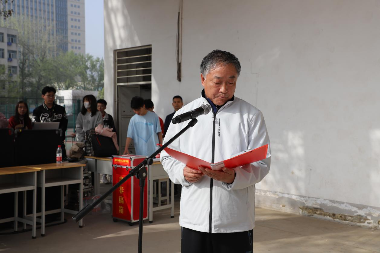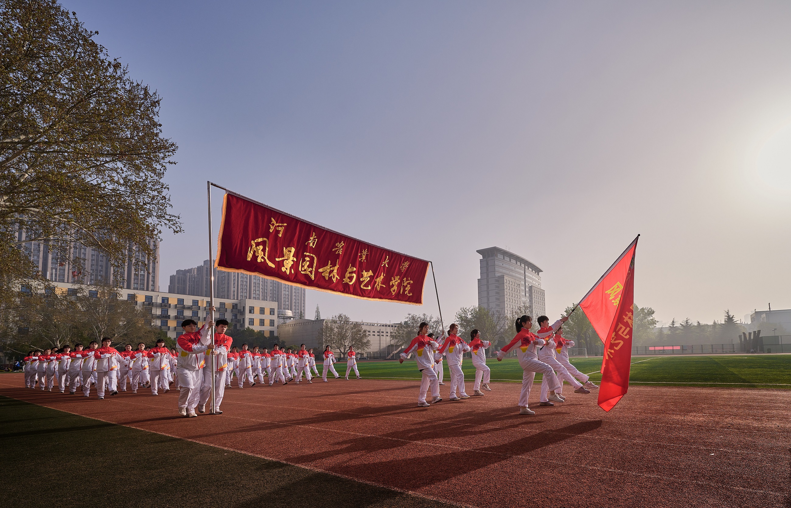 伴随着鲜艳的五星红旗缓缓升起,全体师生面向国旗共唱国歌。院长田国行发表热情洋溢的致辞。他首先代表院党委、院行政向给予首届运动会大力支持和指导的体育学院的老师们表示诚挚的谢意,向精心筹备本届运动会、付出辛勤劳动的全体师生表示衷心的感谢,向全体裁判员致以亲切的问候,向全体运动员致以良好的祝愿!他指出,新学院成立以来,在教学、科研、管理、服务和人才培养等方面取得了丰硕的成果,全院上下呈现出奋发向上、欣欣向荣的大好局面。他希望全体运动员以饱满的激情、勇于拼搏的信念、团结向上的精神投入到本届运动会中,并预祝本届运动会取得圆满成功。