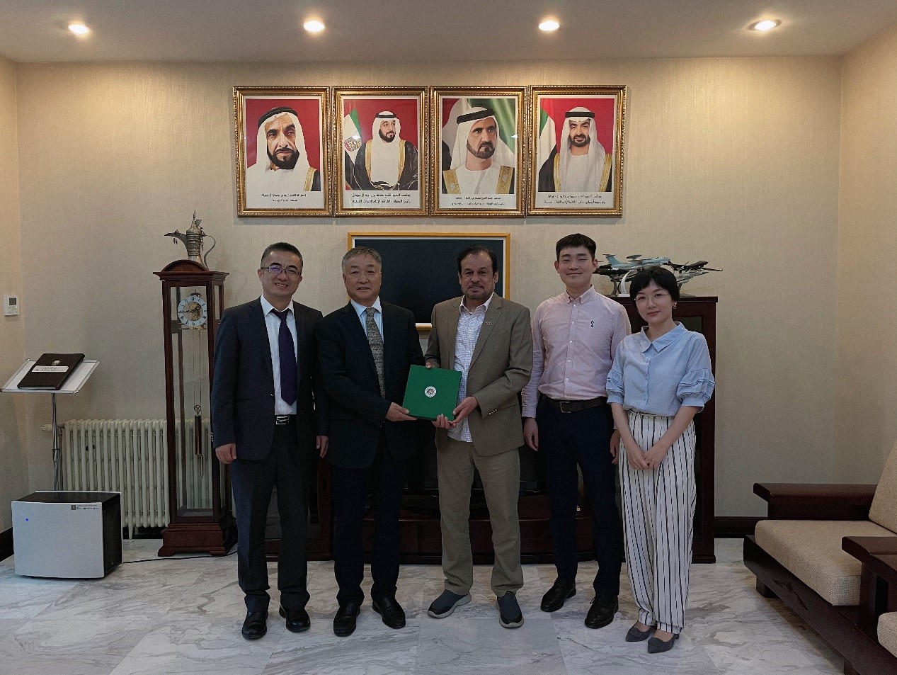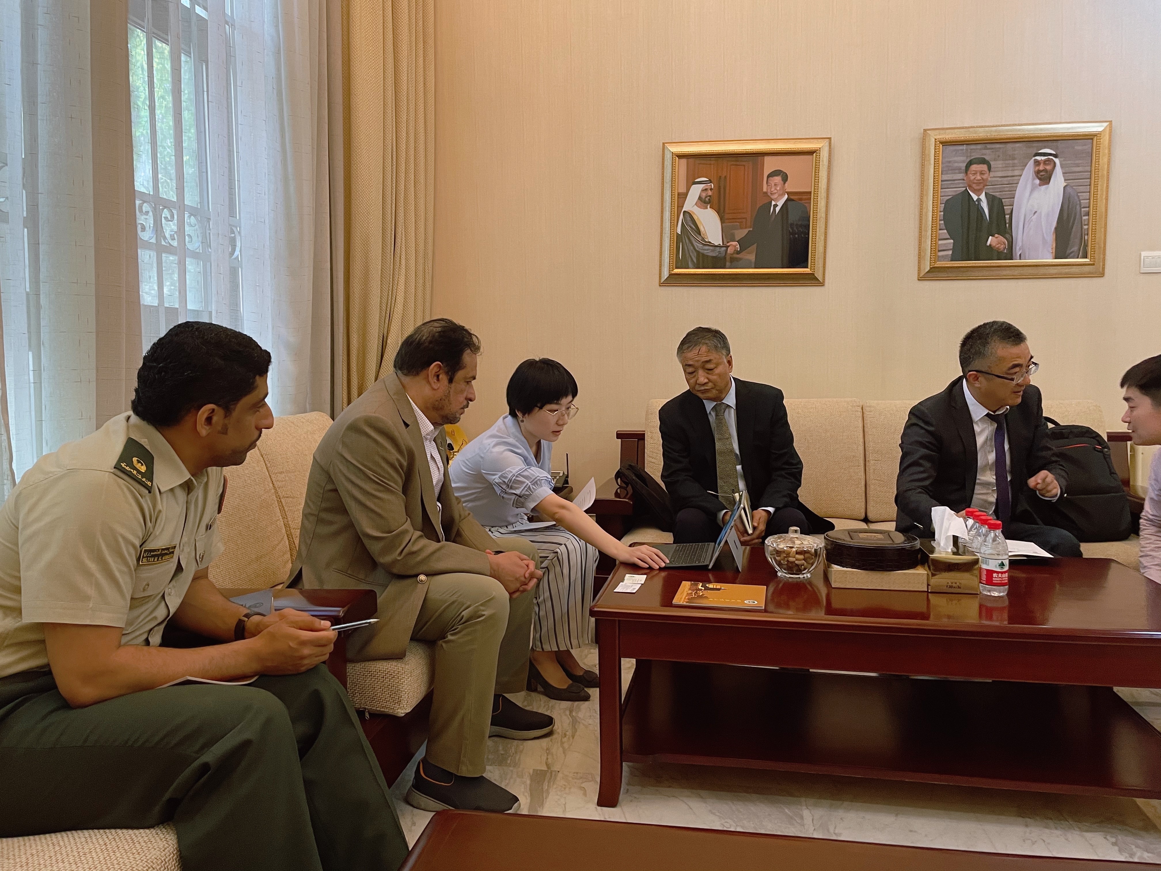 艾哈迈德就阿联酋高等教育和人才培养体系,阿方国际知名高校的发展现状做了详细介绍,并重点在荒漠与沙化环境治理,绿地资源与农业产业协调发展,城市建设与艺术设计等方面提出合作意向,为今后同阿方高校开展高水平科研与教学合作表示热烈欢迎。