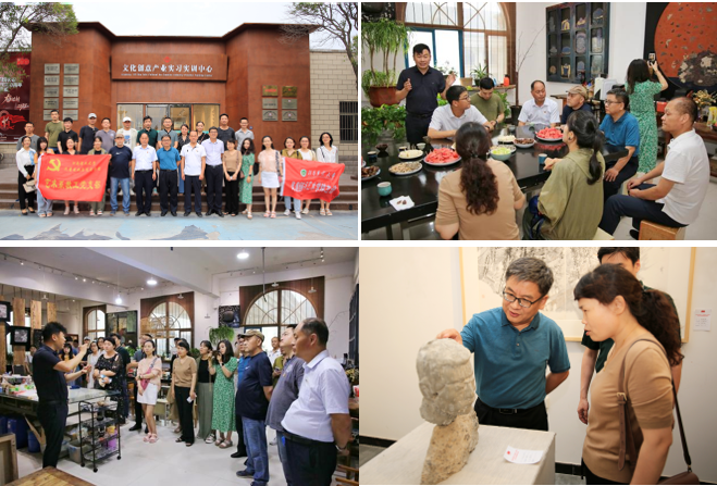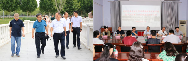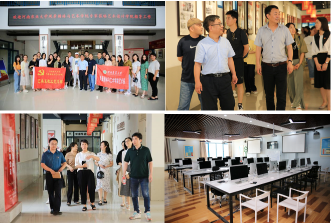 上午在商丘师范学院艺术设计学院党委书记杨莹莹、院长朱长征、副院长苏世昌、任然等的陪同下,观看了商丘师范学院校党史学习教育图片展、艺术设计学院剪纸展、海报展等展览,并参观了艺术设计学院达内实践实训基地、数字创意研发服务中心、动漫研发中心、商业摄影实验室等校内实训场所。随后,在展厅外的党旗下,艺术系全体党员同志举行了重温入党誓词的党日活动。座谈会上,副校长程功鹏,代表商丘师范学院对阴予兴一行表示热烈的欢迎,并重温了两校开展的友好合作与交流历史。随后双方就应用型本科专业人才培养方案修订、课程思政建设、本科教学评估、实践教学、社会服务、硕士生联合培养等相关工作进行了深入交流和探讨。这必将进一步加强和促进双方在艺术设计领域教育教学改革发展的合作与交流。