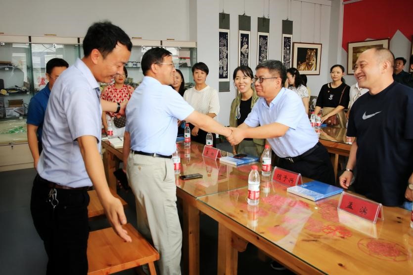 下午在商丘师范学院美术学院党委书记史继红、副书记付松山、副院长曹天成等的陪同下,先后参观了漆画工作室、3D打印实习实训中心以及文创实训中心的木雕、皮雕、漆艺、铁艺、传统弓箭制作等工作室和版画制作画室。在各个工作室认真听取了相关负责人的讲解与介绍。艺术系教师们仔细观看了各个工作室展示的各种作品,详细了解了工作室在创作中取得的各项成绩,并与各个工作室负责人进行了广泛深入的交流。座谈会上,史继红对阴予兴一行表示热烈的欢迎,曹天成简要介绍了美术学院的基本情况。阴予兴表示商丘师范学院美术学院的工作室教学成果丰硕,专业特色鲜明,特别是漆画创作成绩得到省内外的广泛声誉和好评,对瓜子TV 专业建设有很大启发,希望今后双方加强联系,互相学习交流,推动两个学院更好的发展和合作。