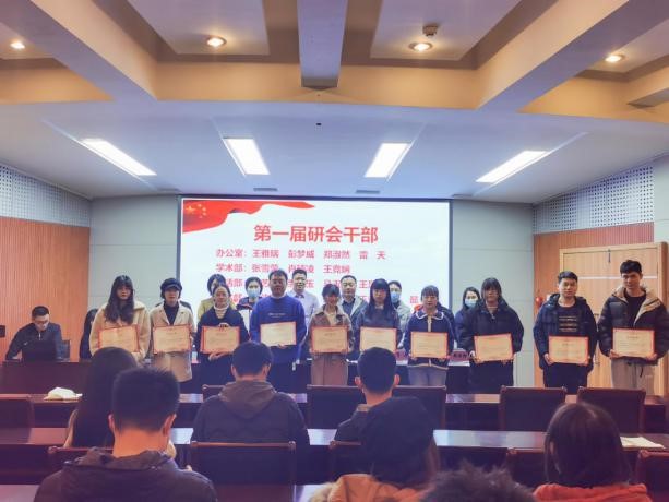 首先,学院第一届研究生会主席团代表袁德强同学对过去一年研究生会工作做全面总结。随后,出席会议的领导、老师们为第一届研究生会干部颁发荣誉证书。