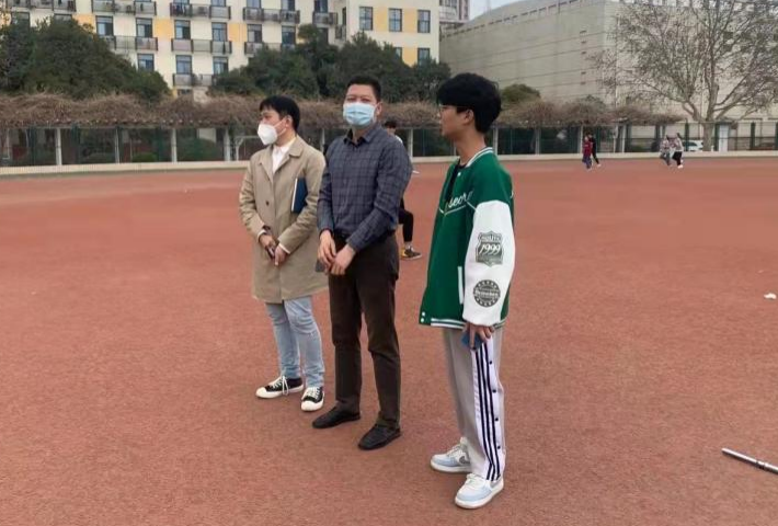 党委副书记胡明忠、团委副书记李雨澍、团委老师马焱前往文化路校区田径场看望瓜子TV