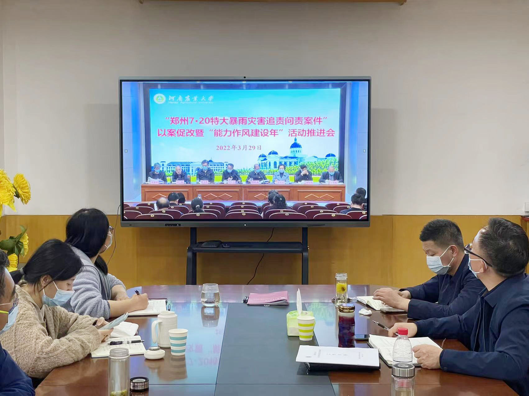 会前,全体参会人员集中收看了河南农业大学2022年全面从严治党工作会议及“郑州7.20特大暴雨灾害追责问责案件”以案促改暨“能力作风建设年”活动推进会视频会议。