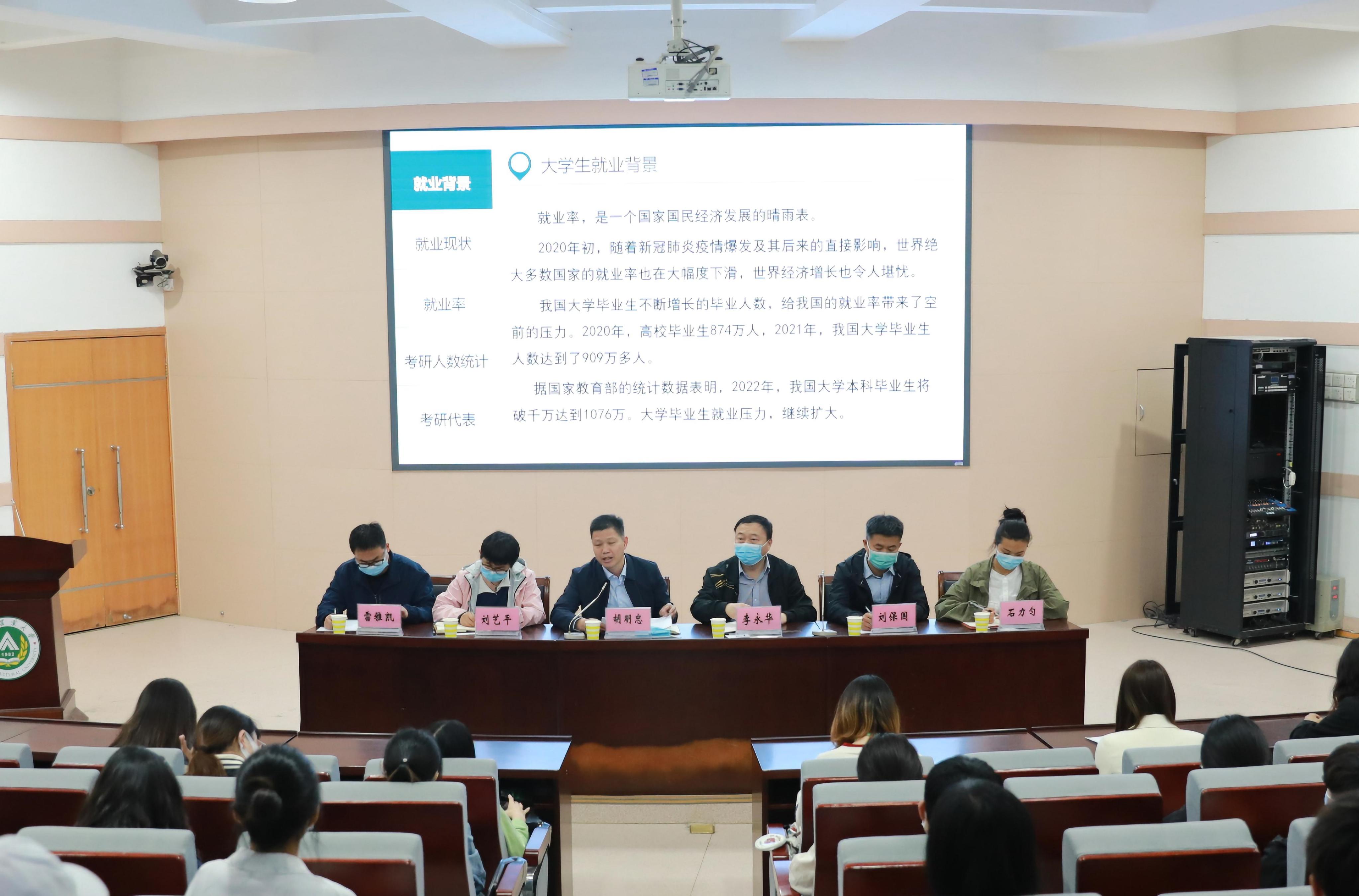 会议伊始,胡明忠结合疫情之下的就业形势分析了考研的重要性和必要性,对考研动态、考研方向、考研前景等作深入解读。李永华重点为同学们解析专业发展、专业跨考、院校选择等方面的问题,鼓励同学们提前了解相关专业考研知识。翟碧璇、张诗诗、朱悦合、刘倩、邓苗、王梓煜等六位2022届上岸的优秀研究生代表依次分享考研经验,她们从不同专业角度切入,就专业备考、时间规划、学习技巧、心态调整等方面展开分享。