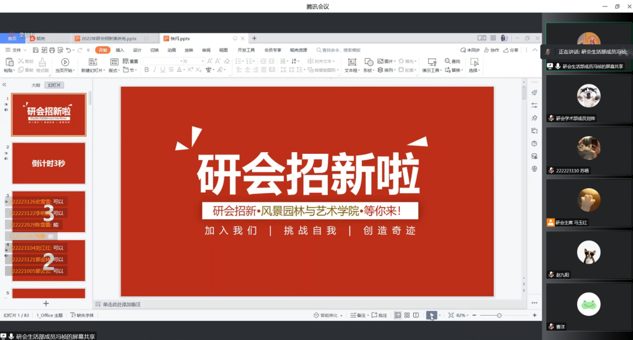 大会最后,学院研究生学生会成员为2022级研究生新生进行研究生会纳新宣讲,分别从研究生会结构、各部门职责、日常事务及研究生会活动等方面进行了宣讲。并欢迎2022级研究生新生积极申请、竞选研究生会,为研究生会注入新的血液。