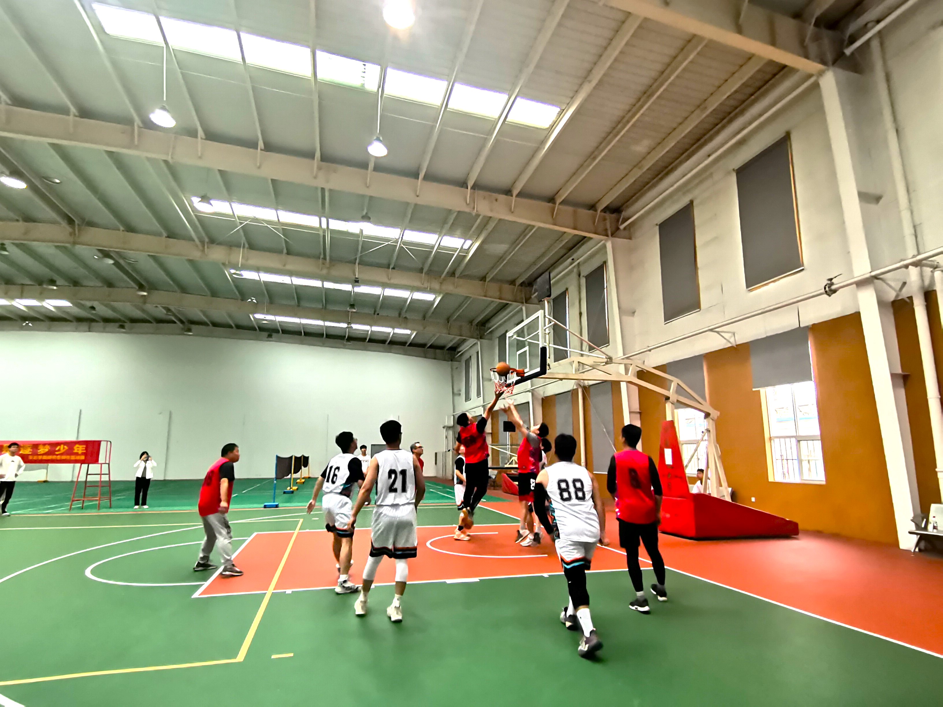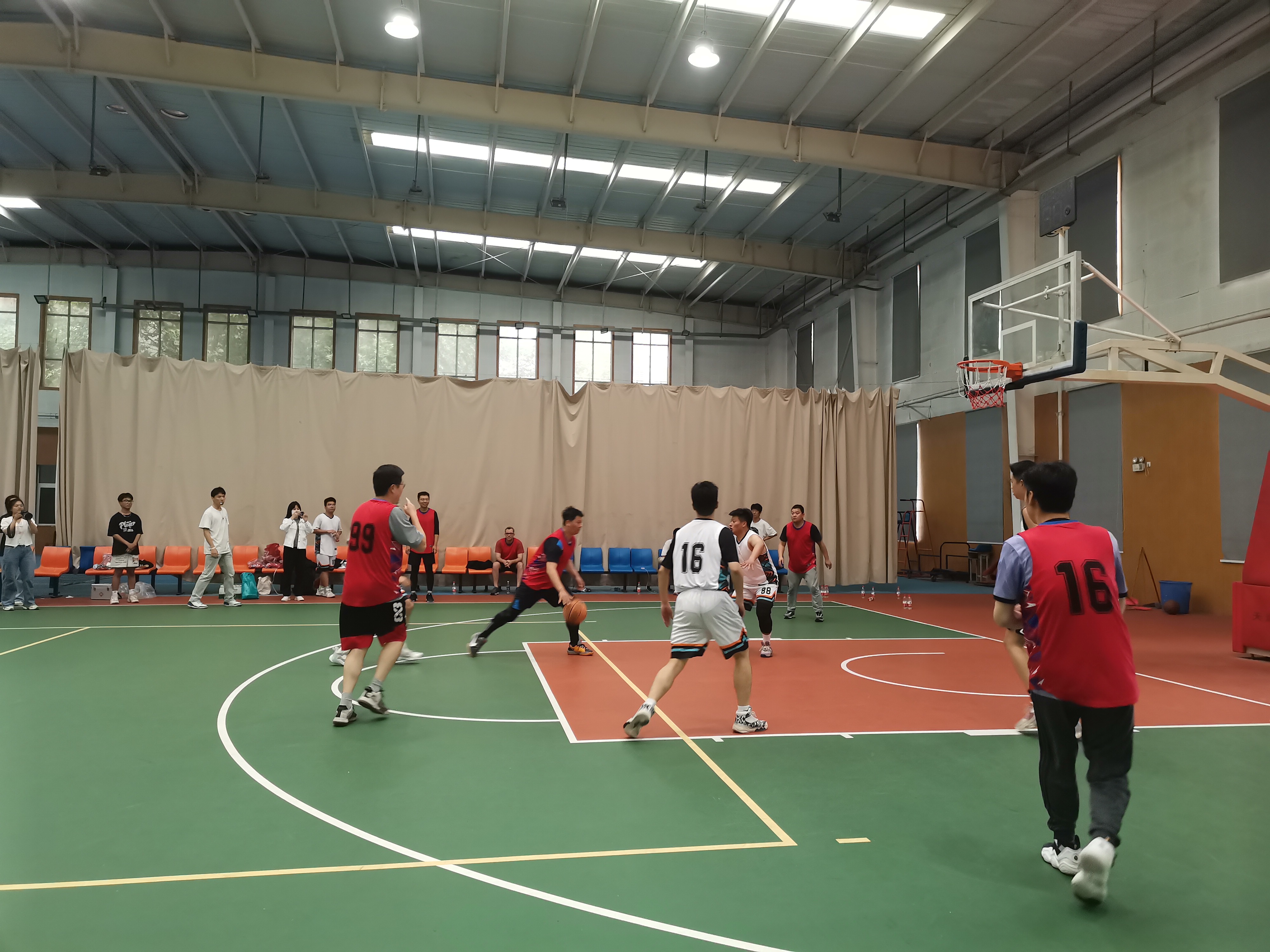 随着一声哨音,球员们的激情瞬间被点燃,比赛拉开帷幕,球员们发球、运球、投篮,在球场上叱咤风云。学生队伍积极拼抢,防守反击,展现着学子的朝气蓬勃;教师队伍凭借着充足的比赛经验相互配合,利用娴熟的球技与精准的投篮将比赛推向高峰。场边观众更是热情高涨,激情昂扬的欢呼声与呐喊声让篮球比赛不断升温。激烈的比赛后,在师生的友好合影中,瓜子TV 研究生师生篮球赛圆满结束。
