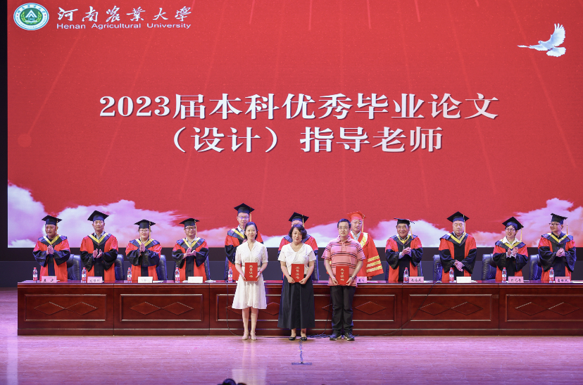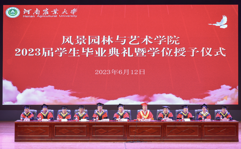 副院长孔德政宣读了《表彰2023届本科优秀毕业生的决定》;副院长阴予兴宣读了《表彰2023届优秀毕业论文(设计)及优秀指导教师的决定》;副院长李永华宣读了《河南农业大学风景园林与艺术学院学位授予决定》。