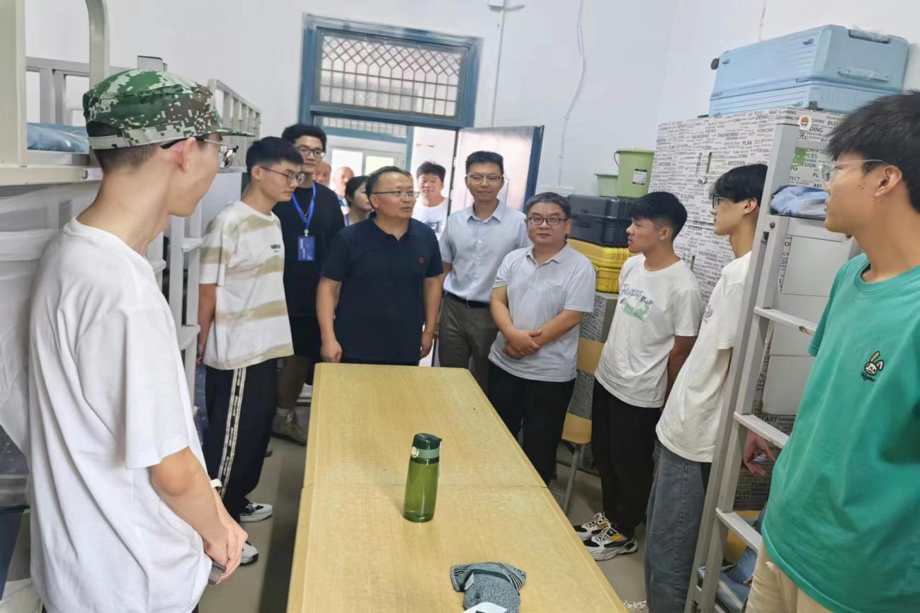 为进一步了解2023级新生入学情况,帮助新生尽快适应大学生活。9月15日,院党委书记侯永华、院党委副书记赵九阳、副院长阴予兴及学院团委老师深入新生宿舍走访慰问,为同学们送去关心与问候。
