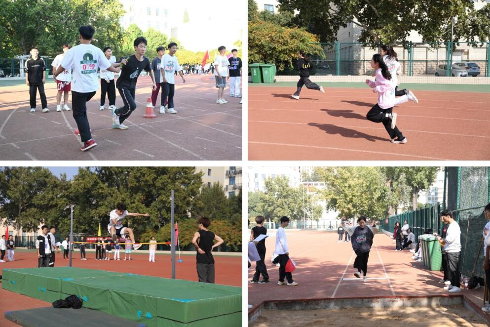 在教工竞赛场地,首先点燃老师们运动热情的是“活力大跳绳”,参赛教师同心协力、步调一致、奋勇争先。随后,“合力搭建”、“齐心协力”项目中老师们团结协作,尽显英姿。拔河项目中,参赛师生更是拼尽全力投入比赛,观战的同学们纷纷加油助威。赛场旁,加油声、欢笑声、喝彩声不断,热闹非凡。