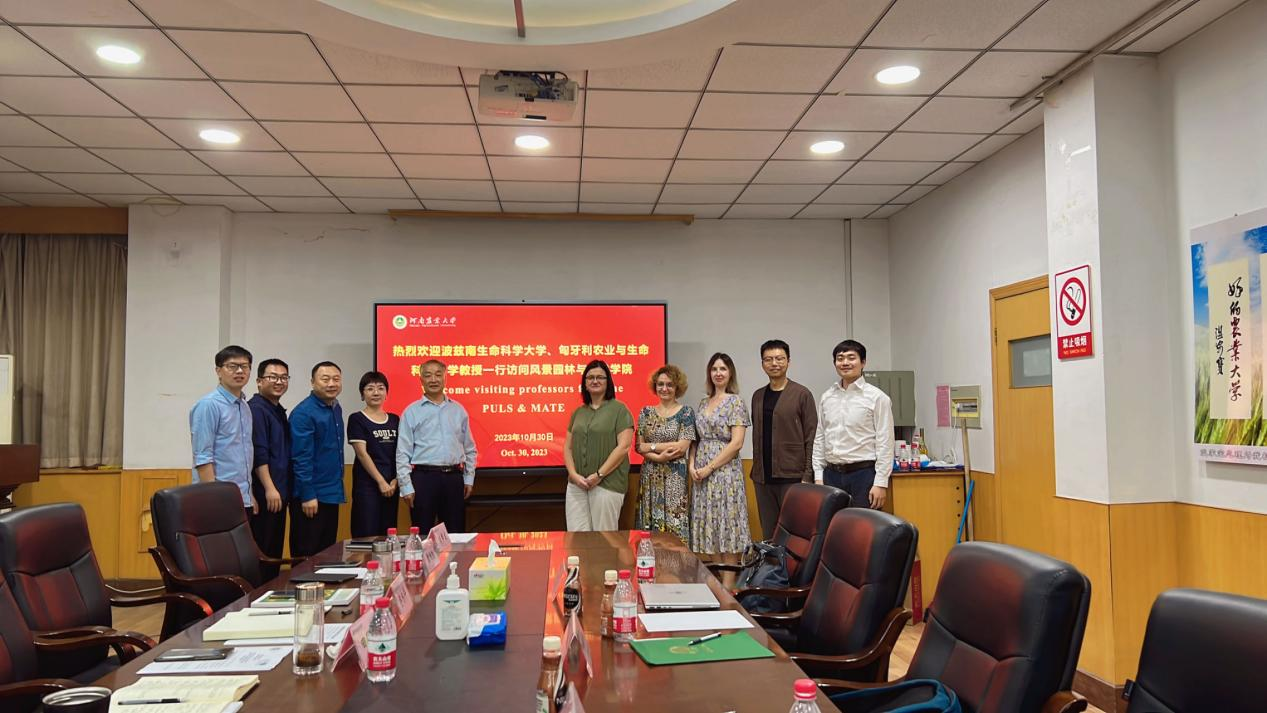 院长田国行首先向远道而来的三位教授进行了友好问候,并对中波两校合作以来,在教育、科研、交流等领域取得的一系列成就表示高度肯定。Klaudia.Borowiak院长感谢我方的诚挚邀请与接待,对首位前往波兰进行Erasmus+交换项目的硕士生李林灿表示高度赞赏,认为此项合作的顺利开展为后续进一步推动学生派遣工作打下了良好的基础。接下来,她向田院长汇报了正在进行的国家留学基金委“乡村人才培养专项”在波学生情况。她表示,作为初次进行的项目,双方在合作初期都付出了诸多努力,令人欣慰的是,首批派遣学生的质量完全符合波方期待。风景园林及城乡规划专业的10位硕士生在波兹南生命与科学大学秉持认真的学习态度,在课程中勇于发问,对社交生活也适应较好,受到当地师生的认可。