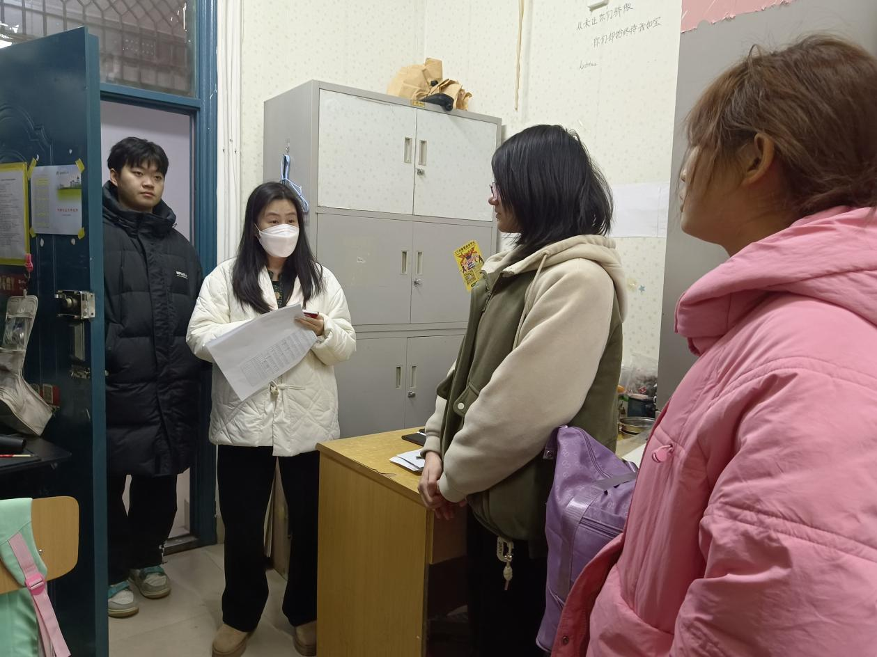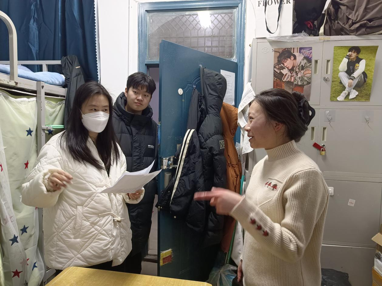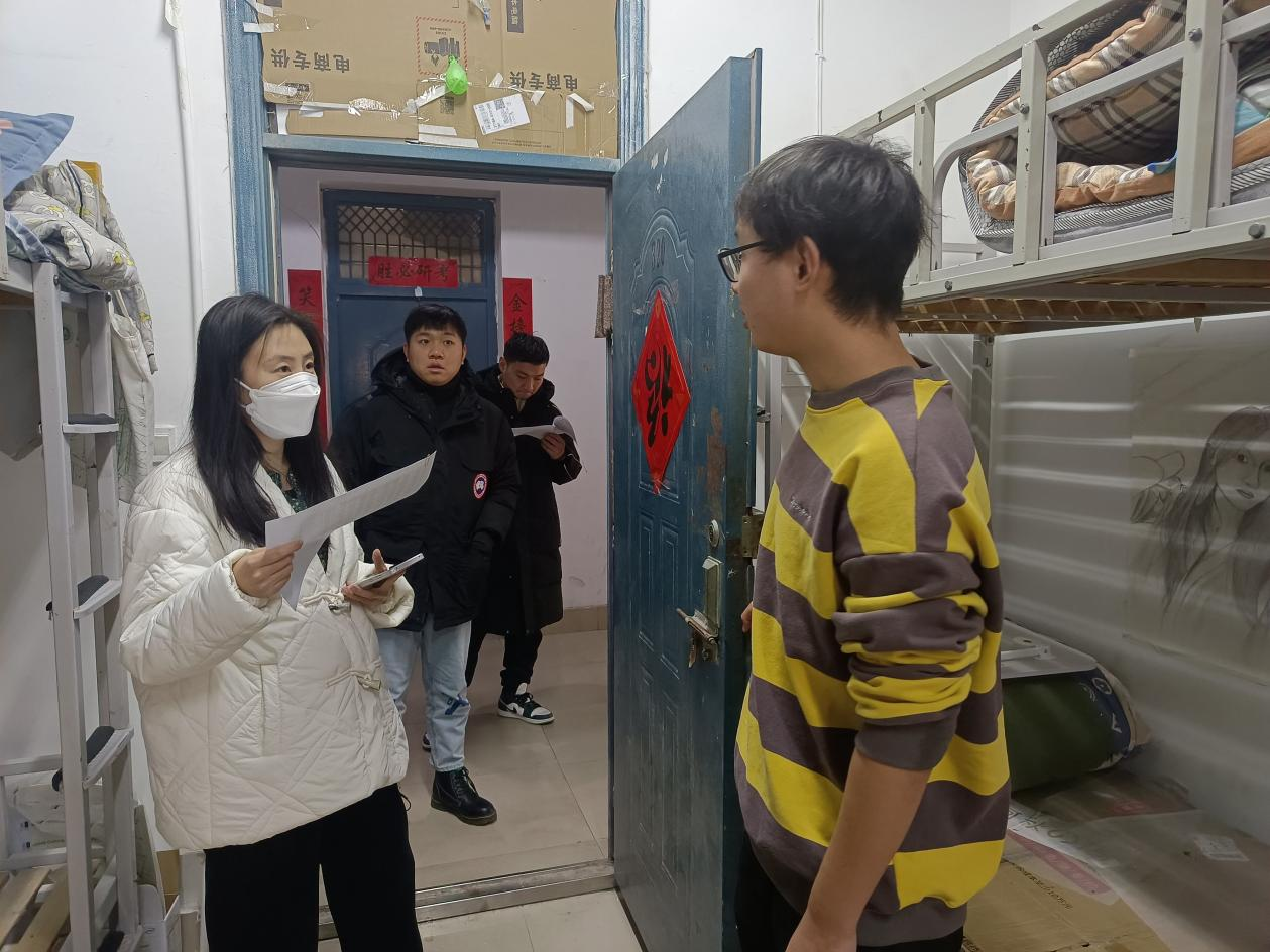 团委老师前往学生宿舍对即将离校的学生进行走访慰问,为学生送去温暖与关怀。