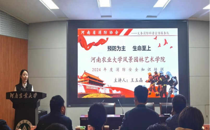 特邀河南省消防协会——义务消防科普宣传服务队于文化路校区100人报告厅开展“预防为主,生命至上”2024年度消防安全知识培训会。学院全体教职工及学生代表参加会议。