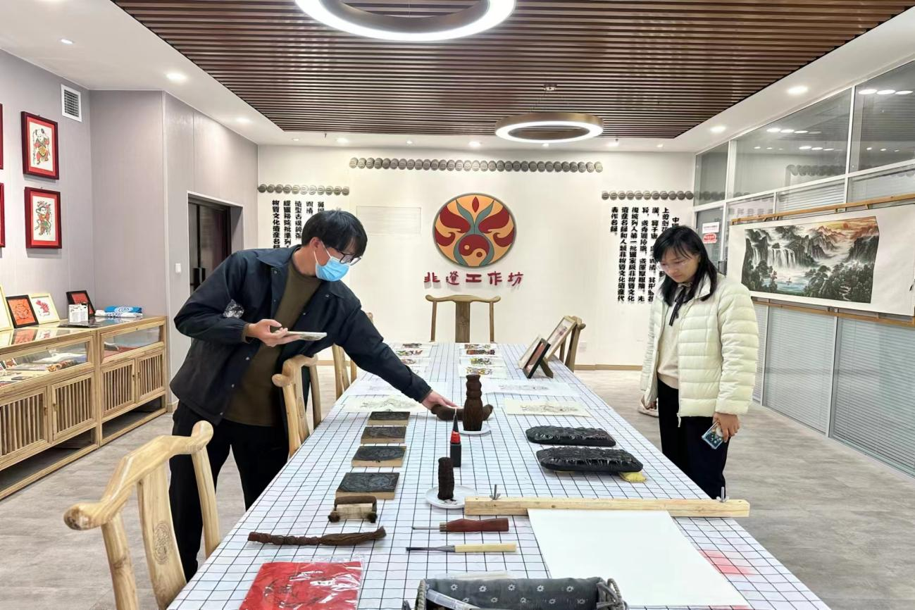 会后,两院代表前往郑州铁路职业技术学院所属非遗工作坊参观剪纸作品及朱仙镇木版年画。艺术学院教师杨路对非遗工作坊的基本情况进行讲解,展示了相关作品,并指导瓜子TV 领导老师亲手制作木版年画,感受非遗魅力。