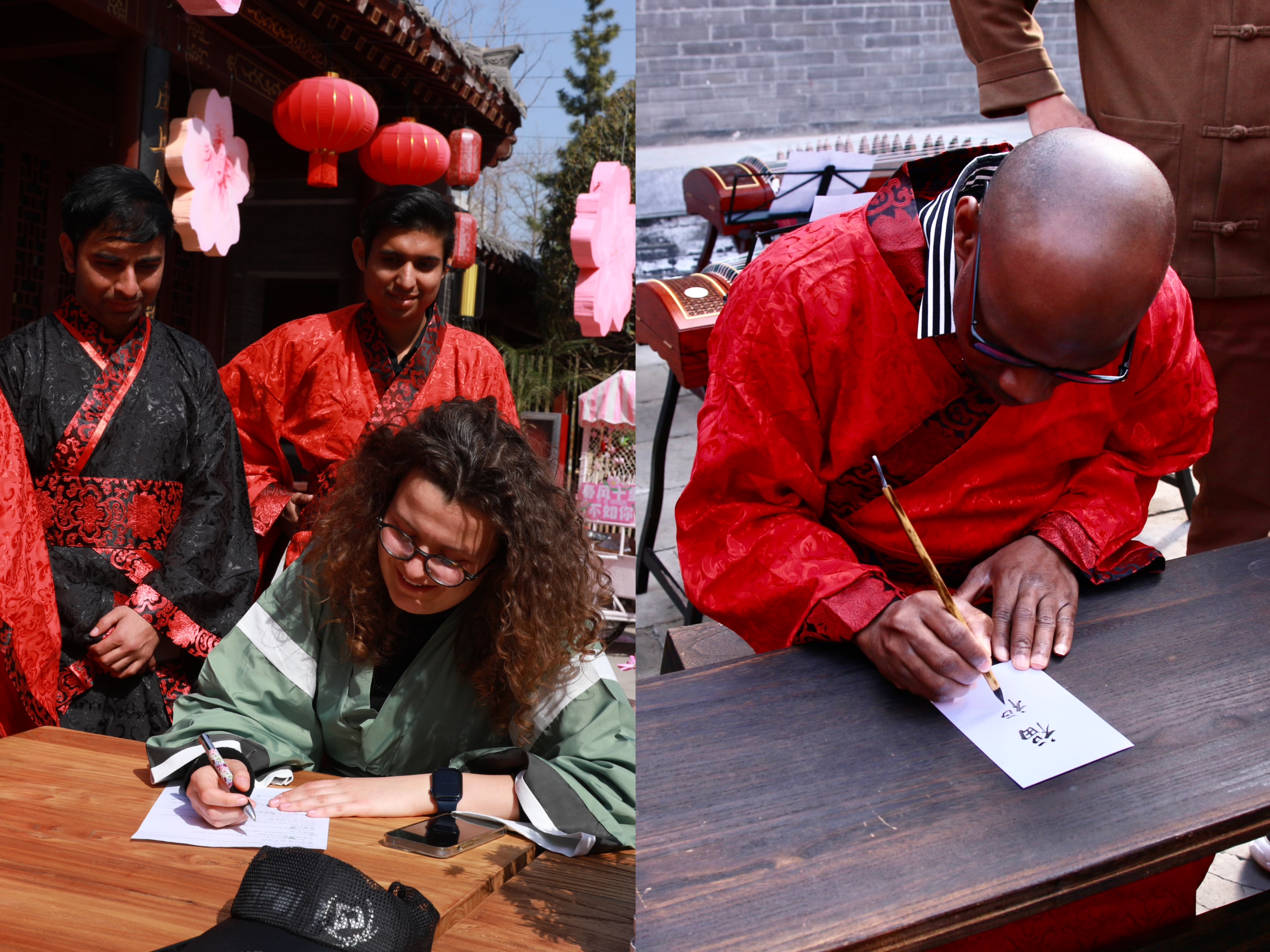 活动伊始,学院艺术团古典舞社、古琴社带来的精彩舞蹈和古筝演奏使在场师生纷纷沉浸其中,并邀请现场留学生进行古筝演奏体验,深入感受传统艺术之美。随后,文化空间福文化创意设计者米戈老师通过“福”字拓印为师生们细致入微地讲解“福”文化的起源和演变,让留学生对“福”文化有了更加深刻的理解。实践环节,留学生们亲手体验拓印技艺,沉浸式感受中华传统文化的魅力。
