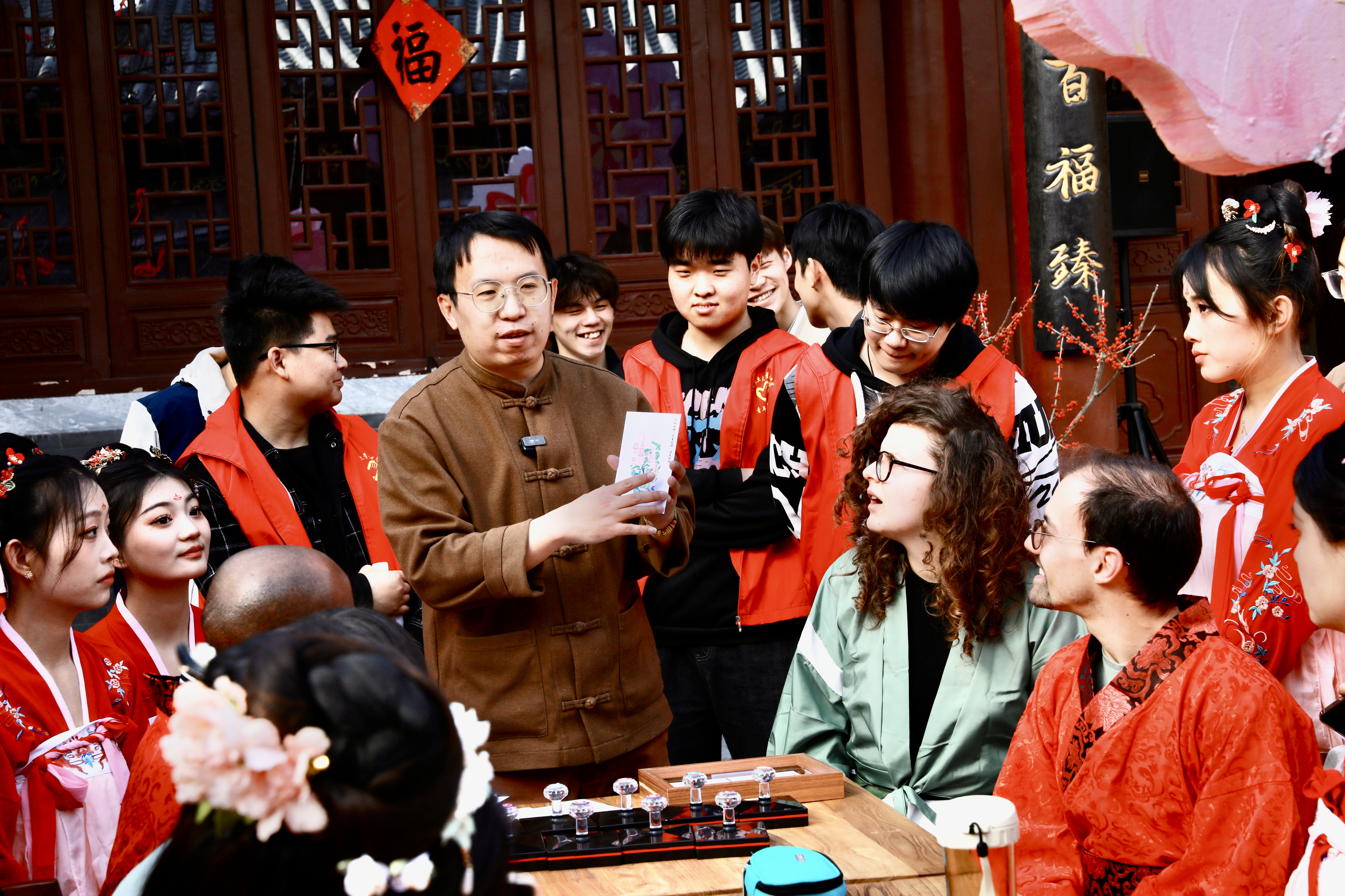 开展“青春谁似我,福苑一家亲”主题活动,组织来自意大利、巴基斯坦、蒙古等国家的留学生前往福苑市民公共文化空间,亲身体验汉服、拓印等传统民俗文化,感受中国传统文化魅力。