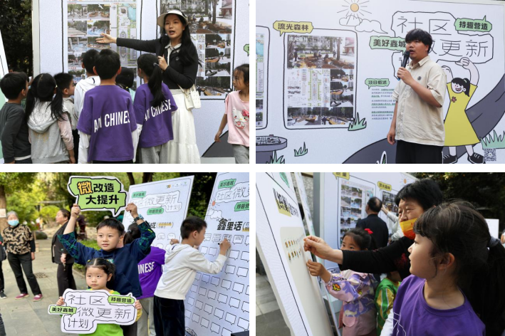 最后,《织巢》和《流光森林》两个方案负责人分别就设计思路及愿景进行了详细介绍。现场居民群众认真聆听、耐心咨询,纷纷参与到方案投票环节,并在展板上书写下对改造方案的看法及对鑫城的期盼祝福。