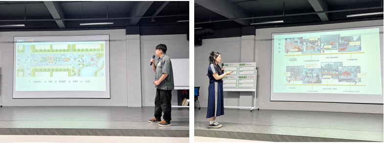 学生团队组长分别围绕对永威·鑫城设计的两个改造项目《织巢》和《流光森林》进行了现场汇报,介绍了作品的设计背景、构思和内容,展现了优秀创意,积极回应居民需求,尤其突出了对老人、儿童的重点关注,充满了浓浓的人文关怀。现场评委及大众评审团进行了提问、投票及合议。