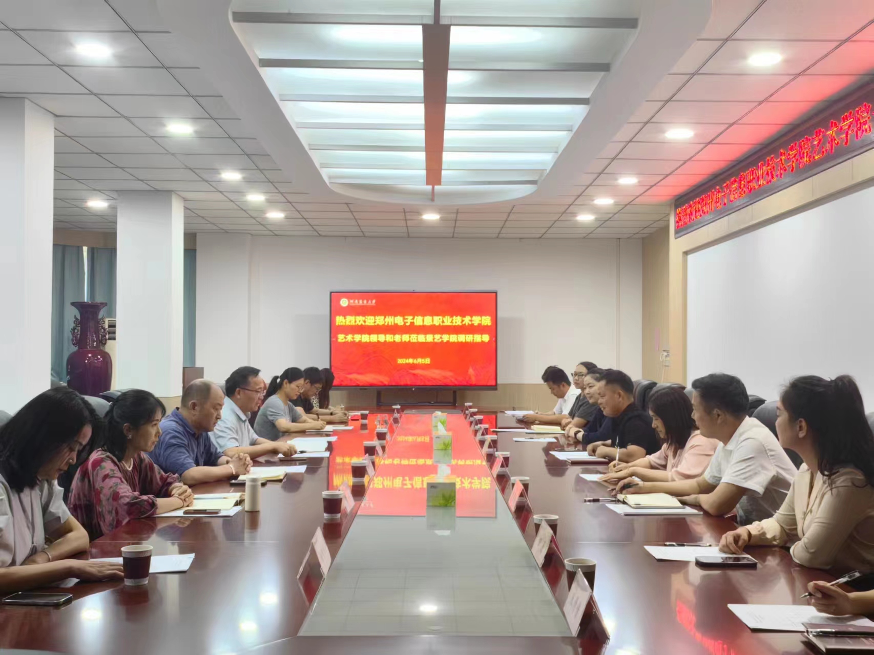座谈会上,侯永华对潘登一行来校调研交流表示热烈欢迎,并简要介绍了瓜子TV 的发展历程、学科建设、人才培养、师资情况、国际合作、社会服务等方面的情况,分享了瓜子TV 在党建工作方面的一些经验和做法。潘登介绍了郑州电子信息职业技术学院艺术学院的基本概况,希望借此调研机会在党建宣传和专业建设等方面得到指导性强的意见和建议。