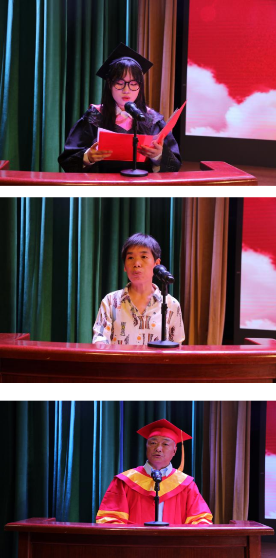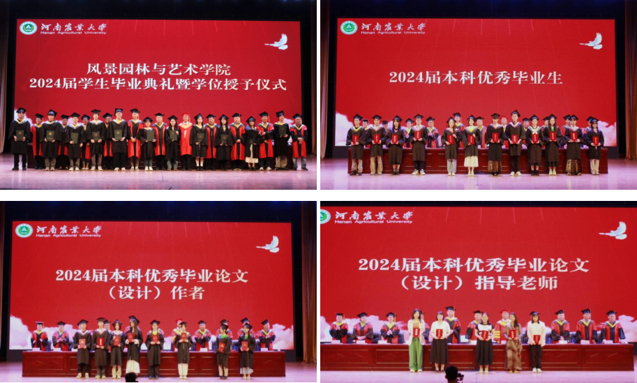 副院长孔德政宣读了《关于表彰2024届本科优秀毕业生的决定》;副院长阴予兴宣读了《关于表彰2024届优秀毕业论文(设计)及优秀指导教师的决定》;副院长李永华宣读了《河南农业大学风景园林与艺术学院关于学位授予的决定》。