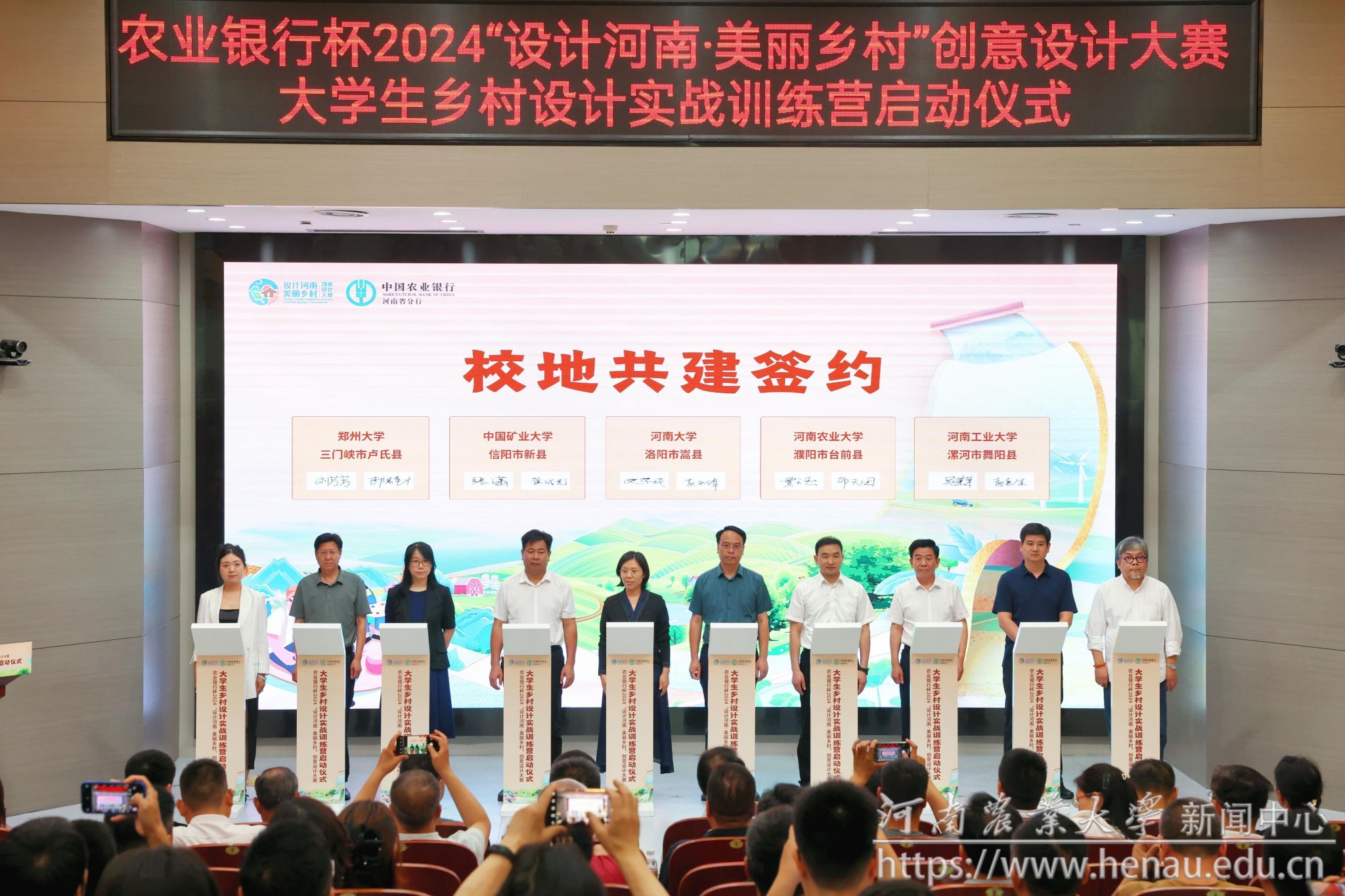 启动仪式上,三门峡市卢氏县、濮阳市台前县、洛阳市新安县、信阳市平桥区、商丘市宁陵县、洛阳市嵩县、信阳市新县、漯河市舞阳县、鹤壁市淇县、安阳市林州市10个大学生乡村设计实战训练营基地所在县与郑州大学、河南农业大学、中原工学院、黄河科技学院、河南农业职业学院、河南大学、中国矿业大学、河南工业大学、郑州轻工业大学、郑州航空工业管理学院10所高校进行现场签约,以校地共建模式,提升河南省乡村设计能力和创意水平,运用片区化开发理念统筹推进宜居宜业和美乡村建设。