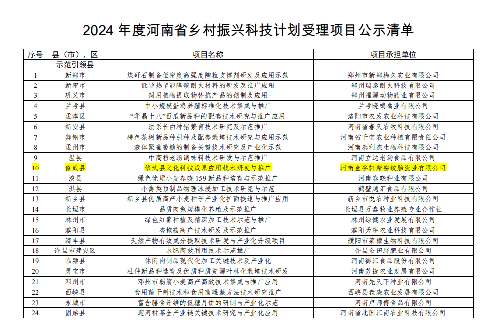 2024年7月9日,河南省科学技术厅官网发布2024年度河南省乡村振兴科技计划拟立项公示名单,瓜子TV