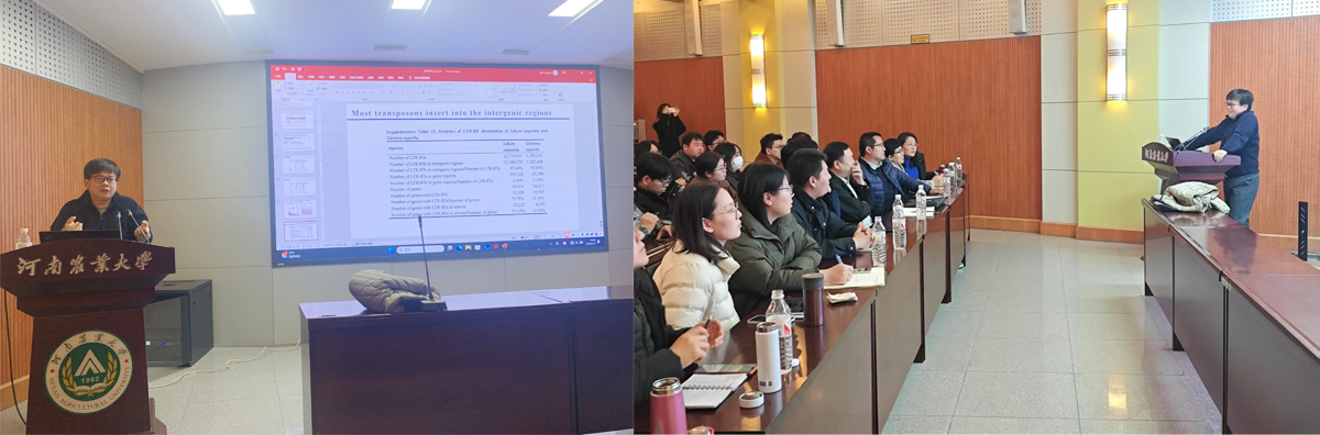 张亮生教授系统梳理了园艺作物基因组学研究进展,着重分享了其团队的创新性成果。针对三倍体香蕉的基因组复杂性,研究团队创新运用PacBio单分子测序和Hi-C技术,结合trio-binning算法,完成三倍体巴西蕉和大麦克蕉的高质量染色体水平基因组,并基于多组学联合分析,成功定位调控果实抗枯萎病的关键RLP基因簇,以及调控果实成熟的关键转录因子MaNAP4和MaNAP5及其靶基因,为香蕉的安全生产(抗枯萎病和提升果实品质)提供新的靶点。在百合基因组研究方面,团队攻克了超大型基因组测序技术瓶颈,成功绘制了泸定百合和嘉兰的高质量基因图谱。通过比较基因组学和转录组学分析,鉴定了与百合鳞茎发育、花芽分化以及球茎生长转变相关基因。此外,研究团队通过代谢组-基因组关联分析,揭示了秋水仙碱合成通路在百合科植物中的独立进化现象,为次生代谢产物合成生物学研究开辟了新路径。
