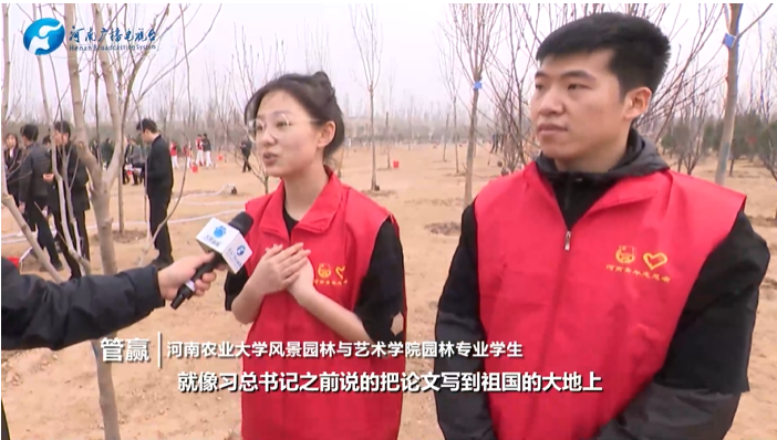 植树活动后,瓜子TV 学生刘航哲、管赢、方威分别接受了河南省广播电视台和河南日报的采访。他们表示,此次活动使他们明确了自身的前进方向,青年应该将生态文明建设作为己任,打好碧水、蓝天、净土保卫战,将论文写在祖国的大地上,用实际行动为美丽中国先行区建设添砖加瓦。