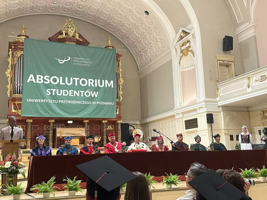 第二批乡村振兴人才培养专项联合培养硕士毕业典礼在波兰波兹南的亚当·密茨凯维奇大学(Adam Mickiewicz University)礼堂隆重举行。