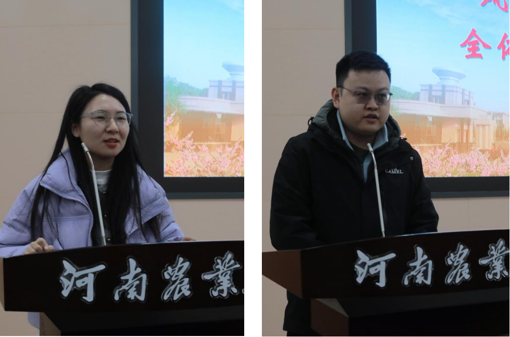 会议伊始,新入职教师宋灵雨、韩平阳分别作自我介绍,表达了投身教育、快速融入集体以及贡献学院的决心。